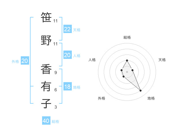 笹野 香有子さんの天格は22画の1点