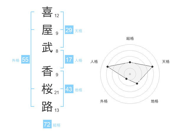 喜屋武 香桜路さんを姓名の画数から五運を鑑定