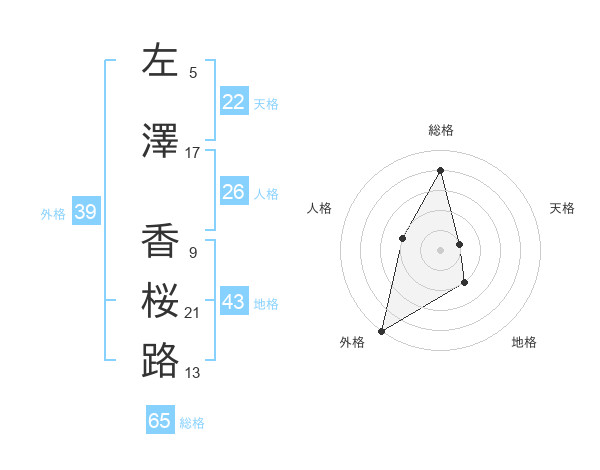 左澤 香桜路さんの総格は65画の4点!