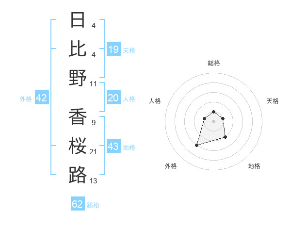 日比野 香桜路さんを姓名の画数から五運を鑑定