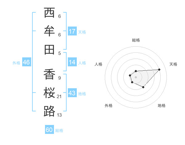 西牟田 香桜路さんを姓名の画数から五運を鑑定