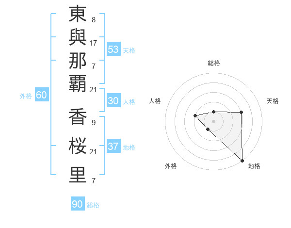 東與那覇 香桜里さんを姓名の画数から五運を鑑定