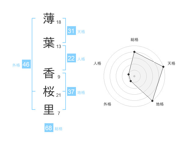 薄葉 香桜里さんを姓名の画数から五運を鑑定