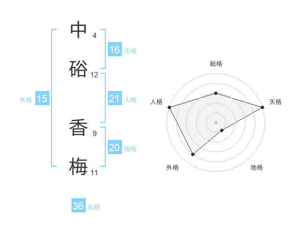 中硲 香梅さんの外格は15画の4点!