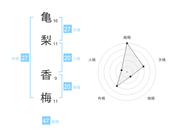 亀梨 香梅さんの総格は47画の5点!