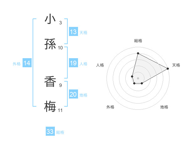 小孫 香梅さんの総格は33画の4点!