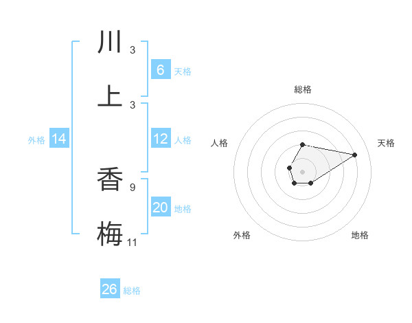 川上 香梅さんの総格は26画の2点!
