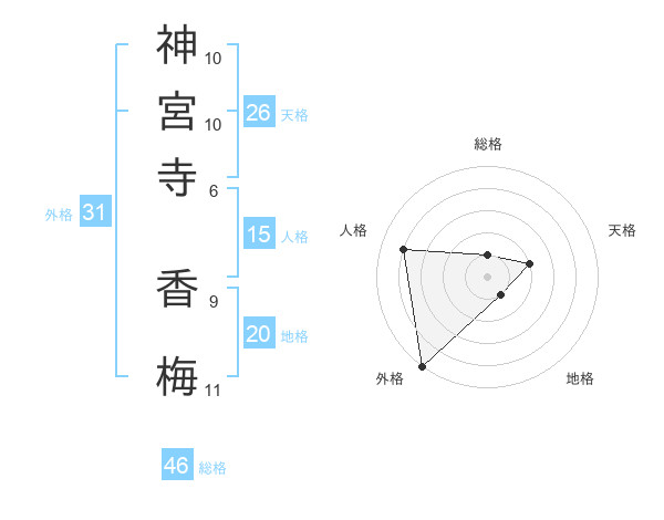 神宮寺 香梅さんを姓名の画数から五運を鑑定
