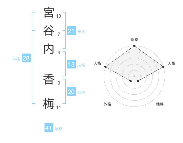 宮谷内 香梅さんを姓名の画数から五運を鑑定