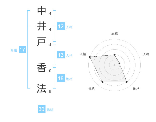 中井戸 香法さんを姓名の画数から五運を鑑定