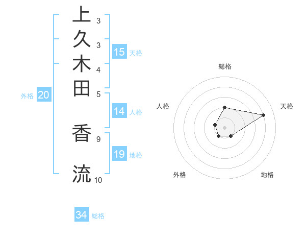 上久木田 香流さんを姓名の画数から五運を鑑定