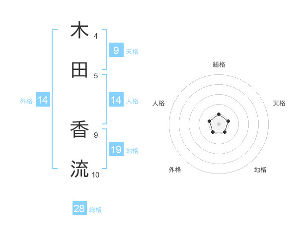 木田 香流さんを姓名の画数から五運を鑑定