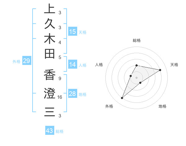 上久木田 香澄三さんを姓名の画数から五運を鑑定