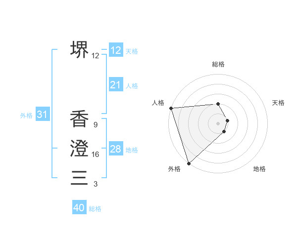 堺 香澄三さんを姓名の画数から五運を鑑定
