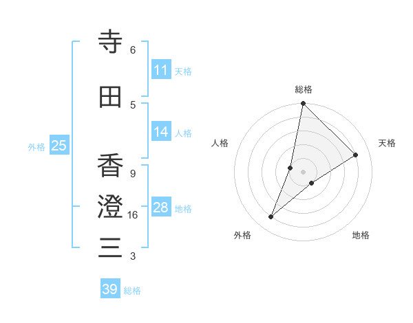 寺田 香澄三さんの総格は39画の5点!