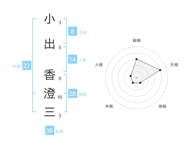 小出 香澄三さんの天格は8画の4点!