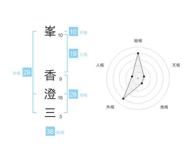 峯 香澄三さんの総格は38画の4点!