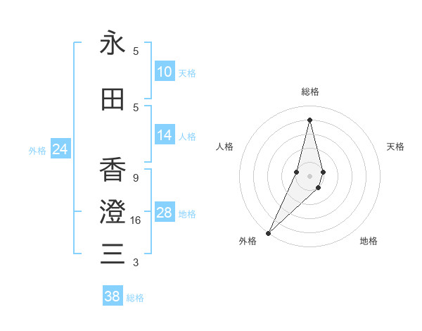 永田 香澄三さんの総格は38画の4点!