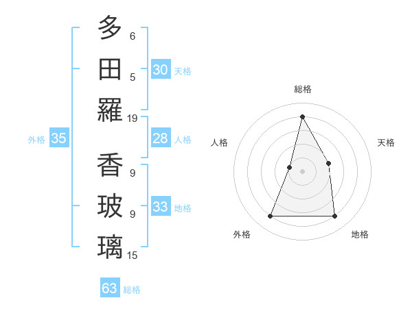 多田羅 香玻璃さんを姓名の画数から五運を鑑定