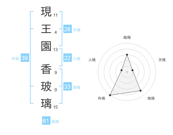 現王園 香玻璃さんを姓名の画数から五運を鑑定