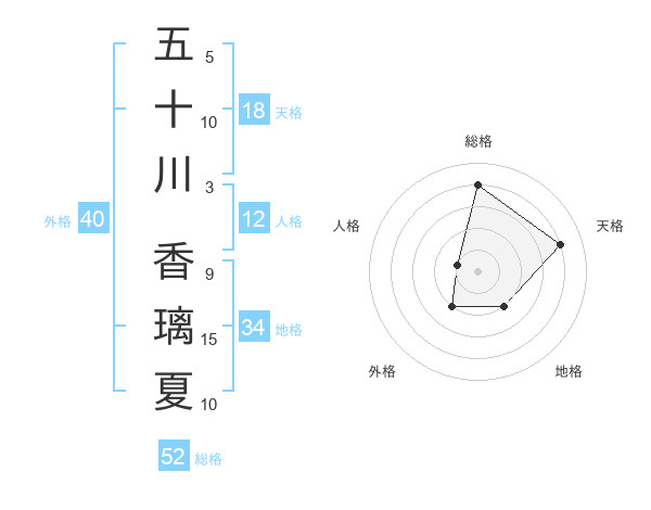 五十川 香璃夏さんを姓名の画数から五運を鑑定