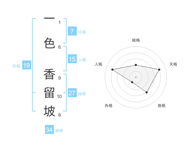 一色 香留坡さんを姓名の画数から五運を鑑定