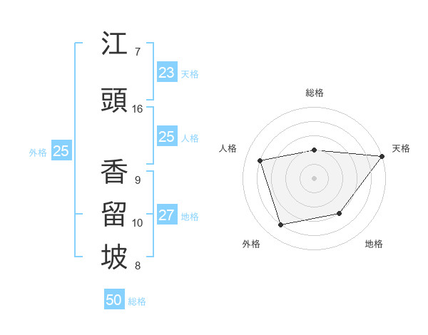 江頭 香留坡さんを姓名の画数から五運を鑑定