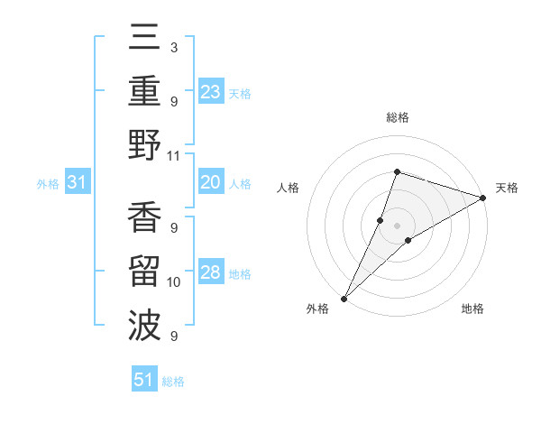 三重野 香留波さんを姓名の画数から五運を鑑定
