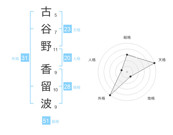 古谷野 香留波さんを姓名の画数から五運を鑑定