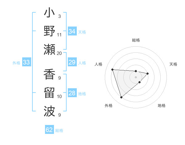 小野瀬 香留波さんを姓名の画数から五運を鑑定