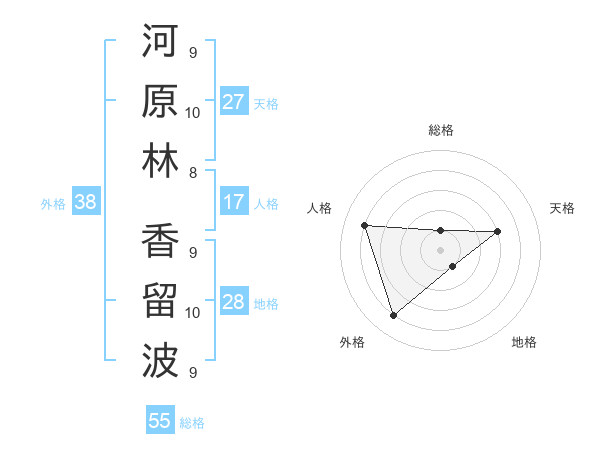 河原林 香留波さんを姓名の画数から五運を鑑定