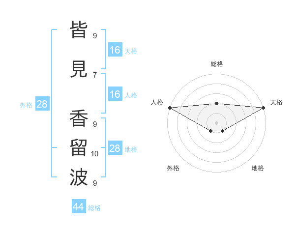 皆見 香留波さんの天格は16画の5点!