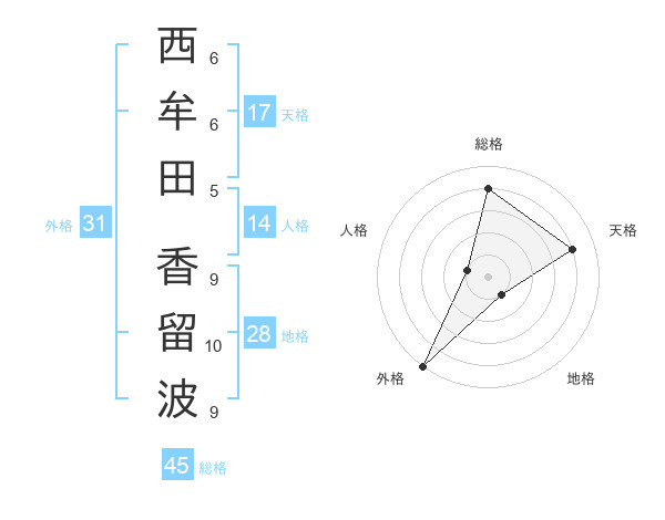 西牟田 香留波さんを姓名の画数から五運を鑑定