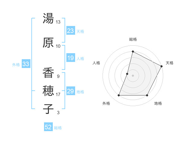 湯原 香穂子さんの外格は33画の4点!