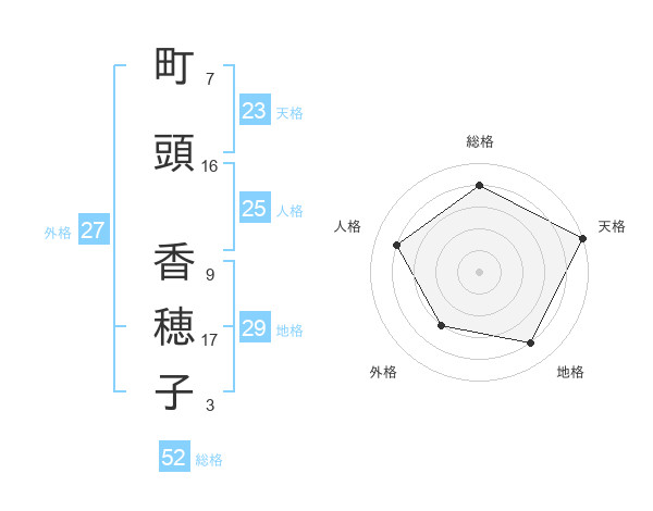 町頭 香穂子さんを姓名の画数から五運を鑑定