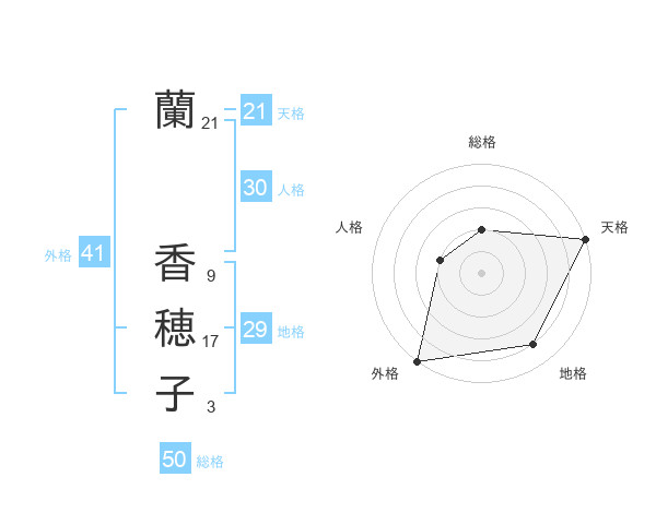 蘭 香穂子さんを姓名の画数から五運を鑑定