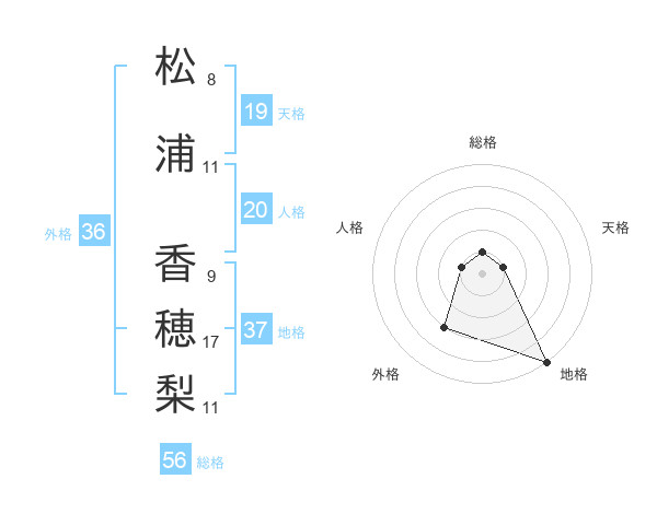 松浦 香穂梨さんの地格は37画の5点!