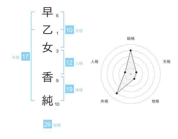 早乙女 香純さんを姓名の画数から五運を鑑定