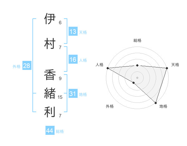 伊村 香緒利さんの総格は44画の2点