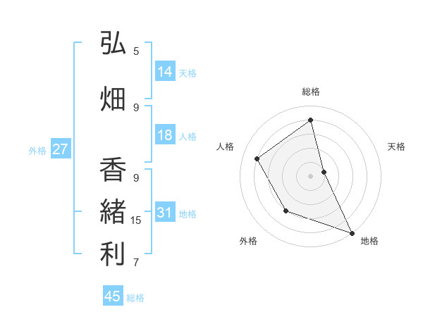 弘畑 香緒利さんの総格は45画の4点!