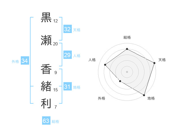 黒瀬 香緒利さんを姓名の画数から五運を鑑定