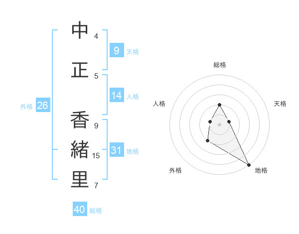中正 香緒里さんを姓名の画数から五運を鑑定