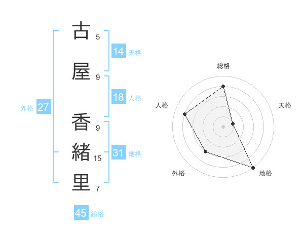古屋 香緒里さんを姓名の画数から五運を鑑定
