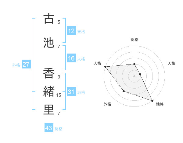 古池 香緒里さんを姓名の画数から五運を鑑定