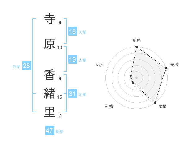 寺原 香緒里さんの総格は47画の5点!