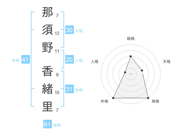 那須野 香緒里さんを姓名の画数から五運を鑑定