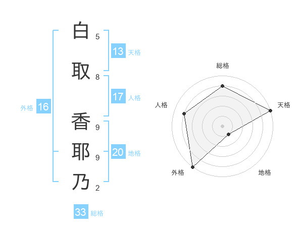 白取 香耶乃さんを姓名の画数から五運を鑑定