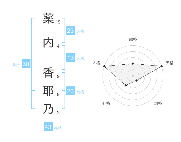 薬内 香耶乃さんの天格は23画の5点!