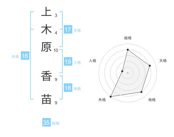 上木原 香苗さんを姓名の画数から五運を鑑定