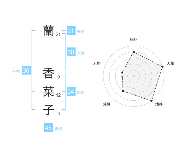蘭 香菜子さんの総格は45画の4点!